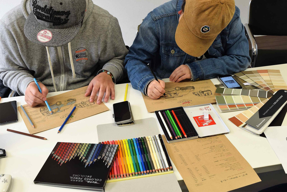 カラーサンプルを見ながらご主人はソリッドのブルー、(^▽^)いいですね~。