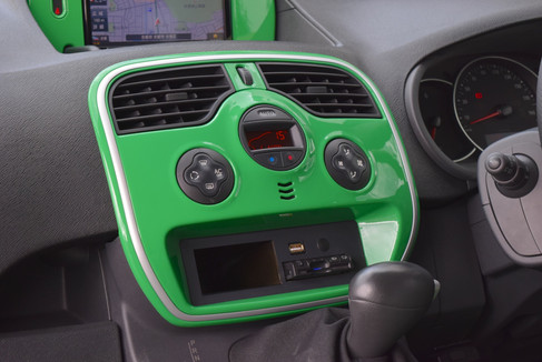 ▼ナビパネル、エアコンスイッチパネルもミドリ